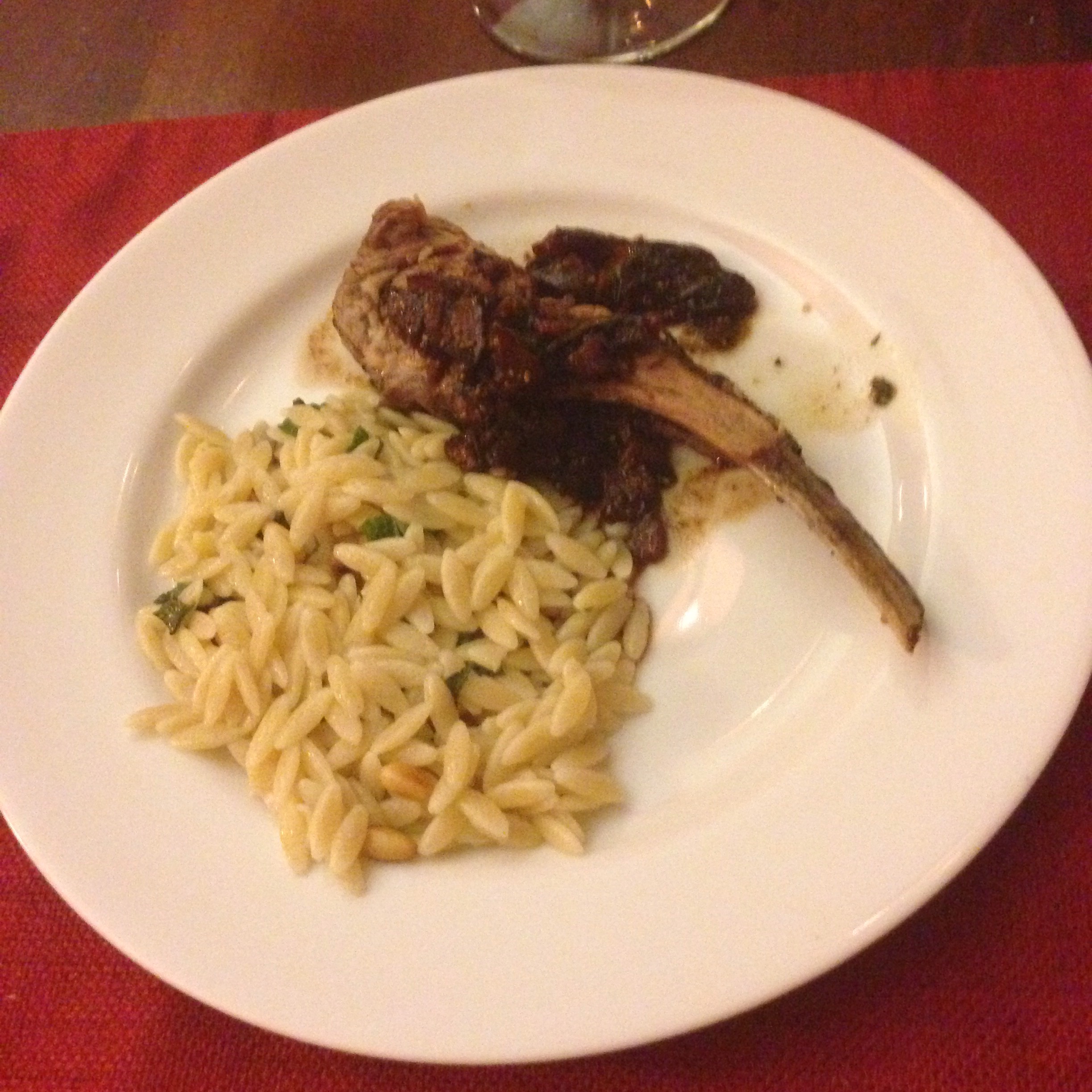 Herbed Rack of Lamb with Port Fig Sauce and Herbed Orzo with Toasted Pine Nuts