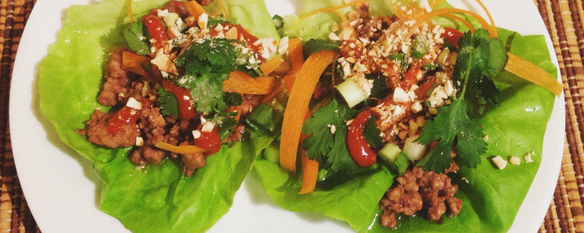 Countless variations of Asian-themed lettuce wraps exist. I created this recipe based on ingredients already in my kitchen along with a few others for which I shopped. This dish is light, low-carb, and paleo. If pork is not your thing, try ground chicken or tofu crumbles instead. Other fresh ingredients are possible as additions or substitutions.