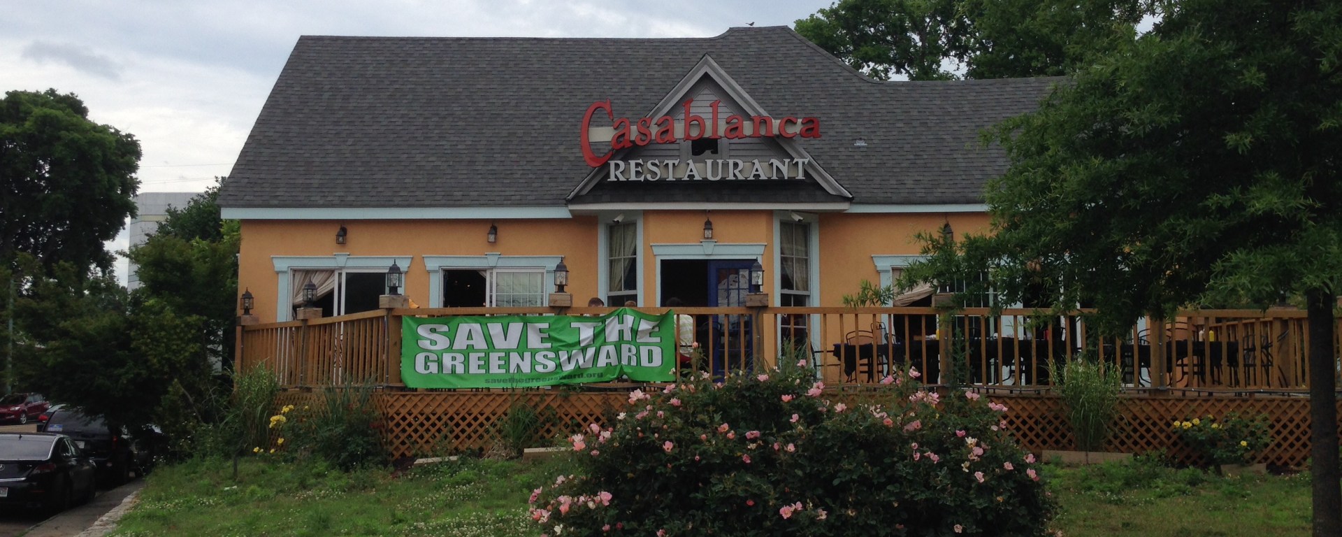 Mr. Shtaya, who hails from Jerusalem, transformed the interior and exterior of the new Casablanca Restaurant into a handsome and cozy place to dine. The interior is richly decorated with autumn orange walls above warm natural wood chair rails and large open windows with swooping drapes. The exterior includes two expansive decks for outdoor eating. The west-facing deck of the restaurant currently features a “Save the Greensward” banner. Thanks for the support Casablanca! The gracious hospitality of Mr. Shtaya and his staff really add to the overall ambience. After 4 visits with different wait staff since Casablanca opened in late 2015, the wait to place your order after you are seated seems a bit long. But your food comes quickly after you order.