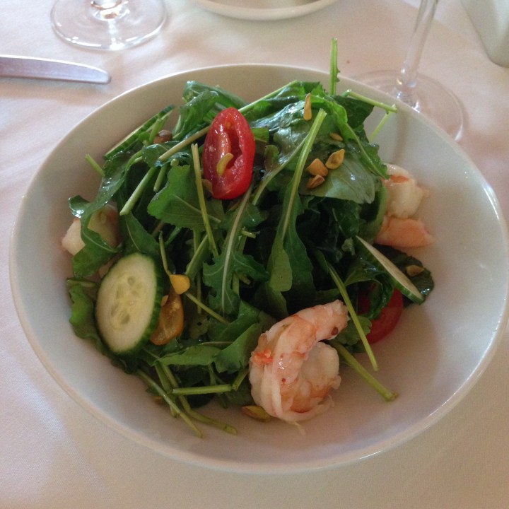 Rebecca’s salad came with poached Gulf shrimp tossed in a ramp vinaigrette with arugula, cherry tomatoes and toasted pistachios. Cool, fresh, bright flavors. ⭐️⭐️⭐️