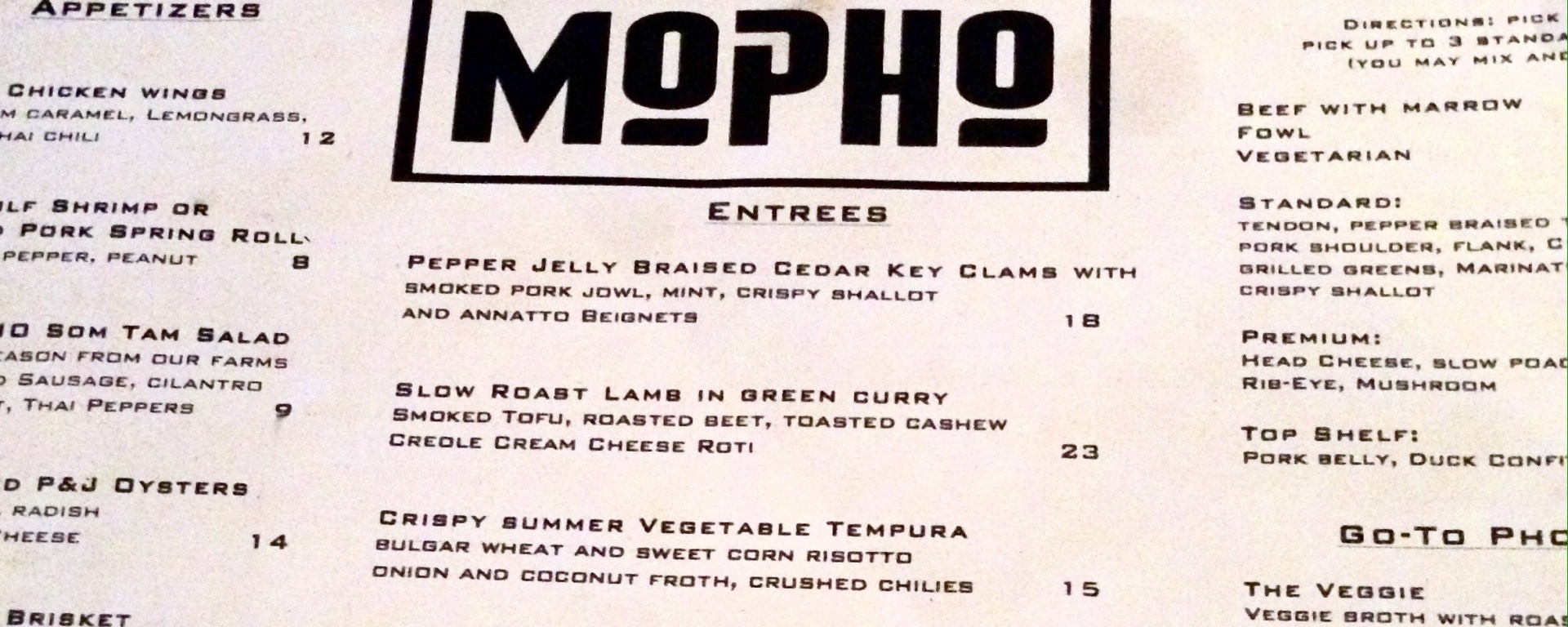 Adventurous visitors to New Orleans expect to find haute cuisine in a former drugstore or small grocery store converted into a swanky restaurant in a charming neighborhood like the French Quarter, the Garden District or the Bywater. Don’t be deterred by the corner strip mall near City Park where MOPHO shares a parking lot with a Subway and Burger King. Intrepid diners, look beyond the vast parking lot from the street to find the diamond in the ruff that is MOPHO. The James Beard Foundation counts MOPHO Executive Chef and Partner Michael Gulotta among its 2016 finalists for Best Chef: South. And Food & Wine Magazine named Gulotta among the Best New Chefs this year.