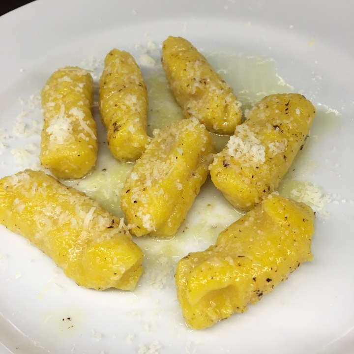 We intended to pair the sweet, smokey Clynelish 14 from The Highlands with a Butternut Squash Gnocchi with butter, nutmeg and parmesan. I made the gnocchi gluten-free to honor the request of guests, but learned a hard lesson. Gluten-free gnocchi does not freeze well. I’ve frozen gnocchi made with all-purpose flour in the past and found that the dumplings respond well when added to boiling water. My gluten-free butternut squash gnocchi disintegrated in the boiling water within seconds. The above picture is indeed the gluten-free gnocchi that I taste-tested the week before. I hoped the sweet squash and fresh nutmeg would pair well with Scotch, but I’ll have to try that another time. Our guests were great sports about the calamity in the kitchen.