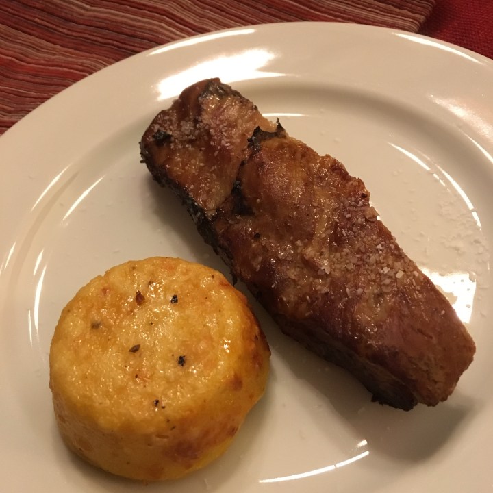 The smokey, oily and peaty Caol Ila 10 from the Isle of Islay needed something substantial for a food pairing. Grilled or smoked meats do well against such Scotch. I smoked pork spare ribs and baked creamy polenta cakes which everyone raved about. Everyone quickly forgot the gnocchi blunder.