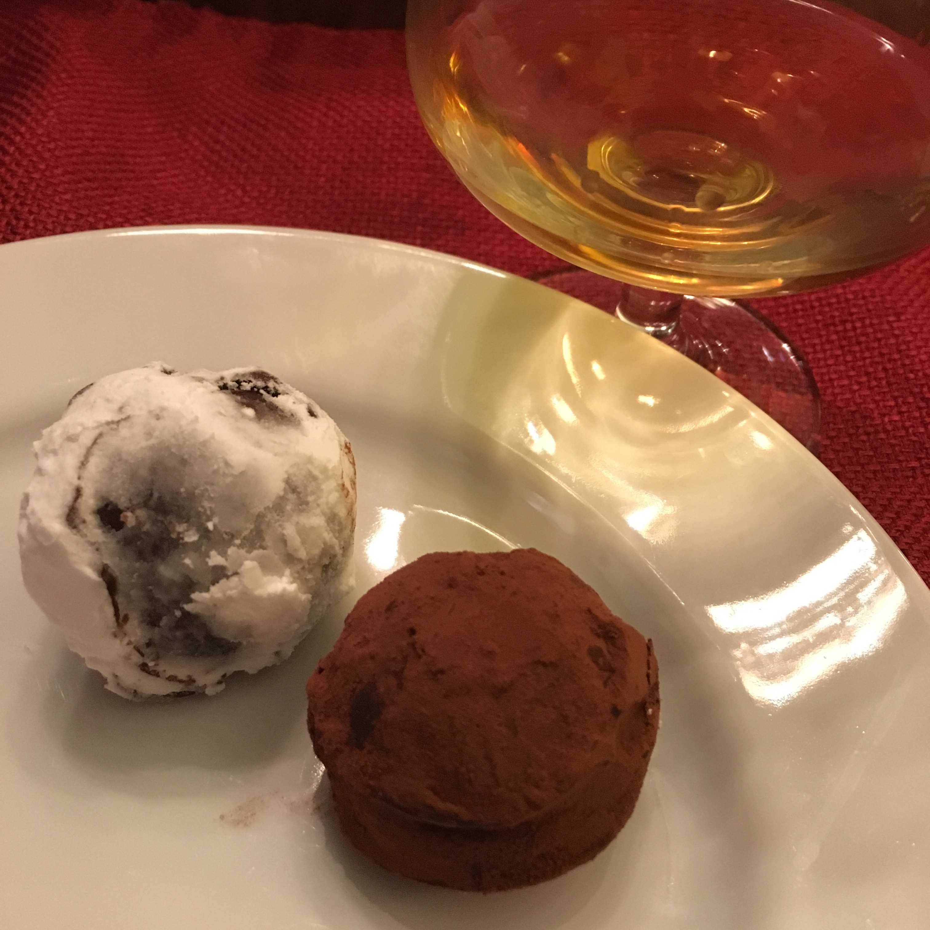 We finished the meal with Chocolate Truffles rolled in cocoa and white confectioner sugar paired with the Talisker 10 from Isle of Skye. Like the previous Scotch, the Talisker is smoky and oily with a peppery bite. Talisker is sometimes used in recipes for the chocolate ganache used to make truffles, but Curtis kept them separate for tonight for a simple pairing.