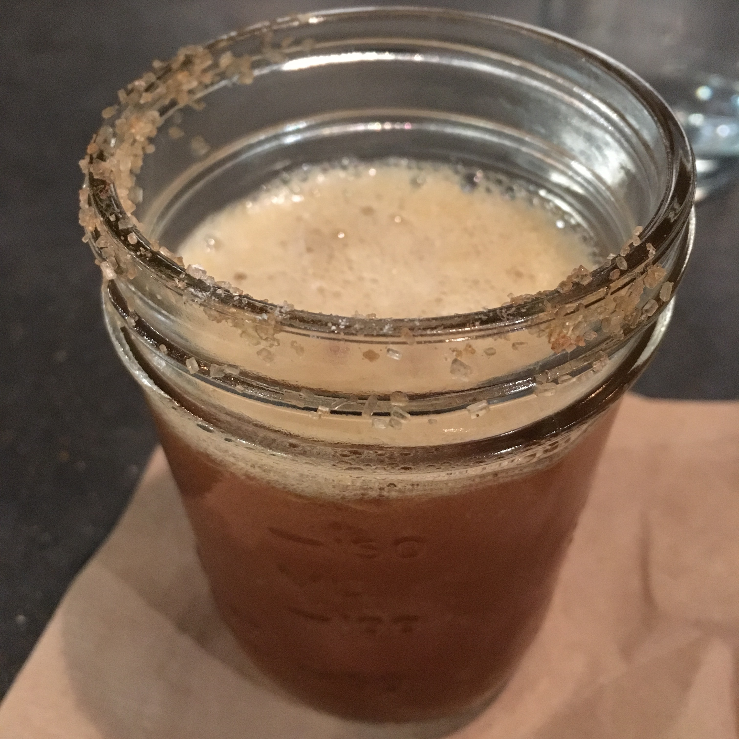 Visiting by myself on a Monday night, I found the dining room full but plenty of seats at the bar or the pizza bar. I chose the bar. When dining alone, sitting at the bar offers social interaction that you wouldn’t get alone at a table. During dinner, I enjoyed receiving and later giving menu recommendations from and to my fellow patrons, respectively. The bar shelves prominently display a variety of whiskeys inspiring a number of signature house cocktails on the menu, but I ordered the Salem made with Cathead Pecan Vodka, Hoodoo Chicory Liquor, Bianca Vermouth, a citrus shrub, and Moscato in a Mason jar rimmed with sugar in the raw. Deliciously tart and sweet with just a hint of bitter.