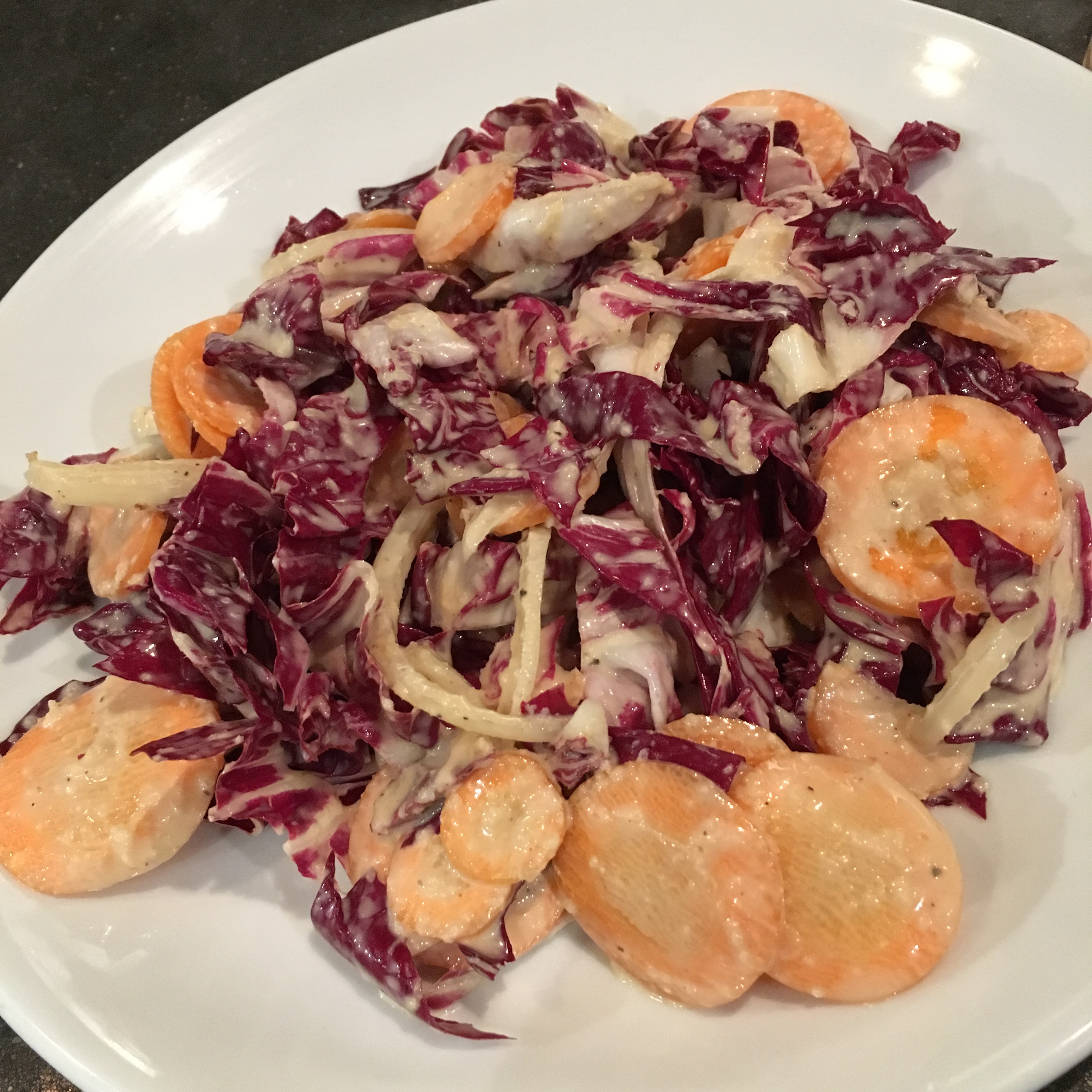 The crisp and bitter radicchio salad with sliced carrot and pickled onion tossed in a spicy-creamy Alabama white sauce came alive in my mouth with every bite. The dressing’s spicy heat conveyed a delicious horseradish zest. ⭐️⭐️⭐️⭐️