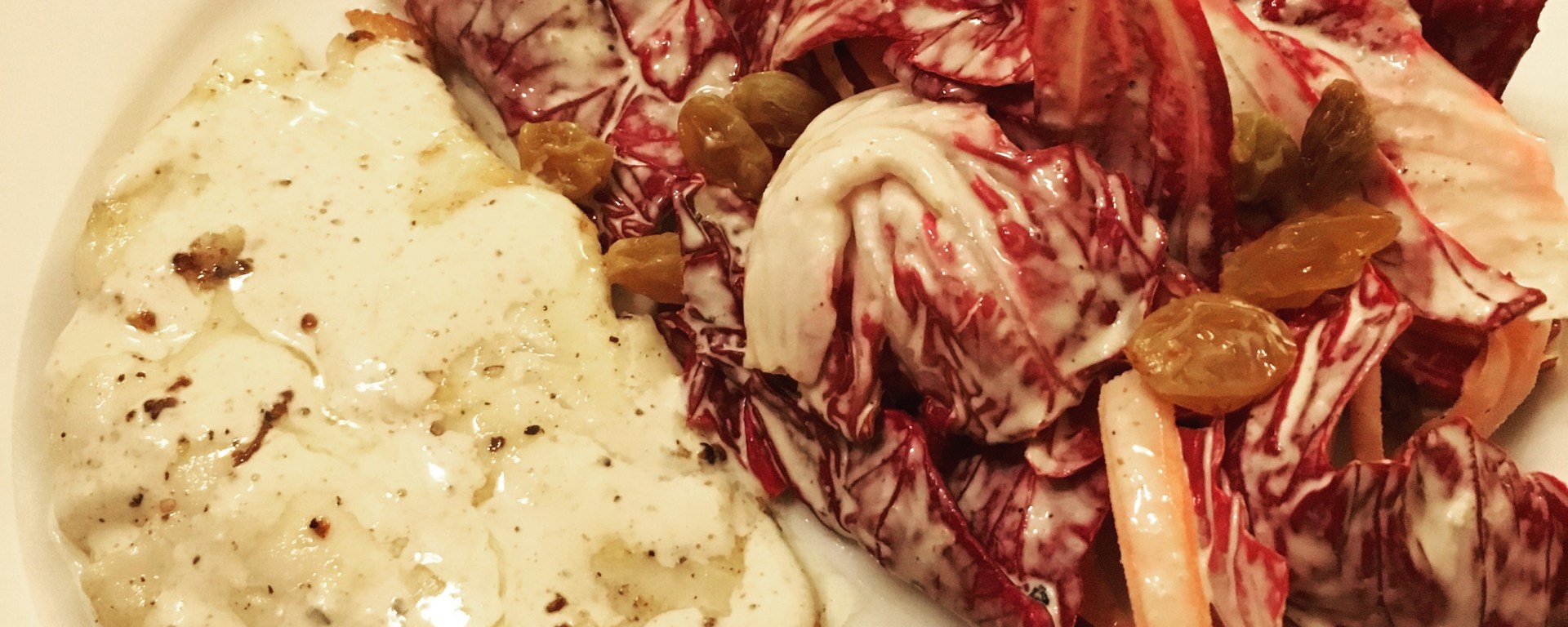 Orange Roughy and Radicchio Salad with Alabama White Sauce