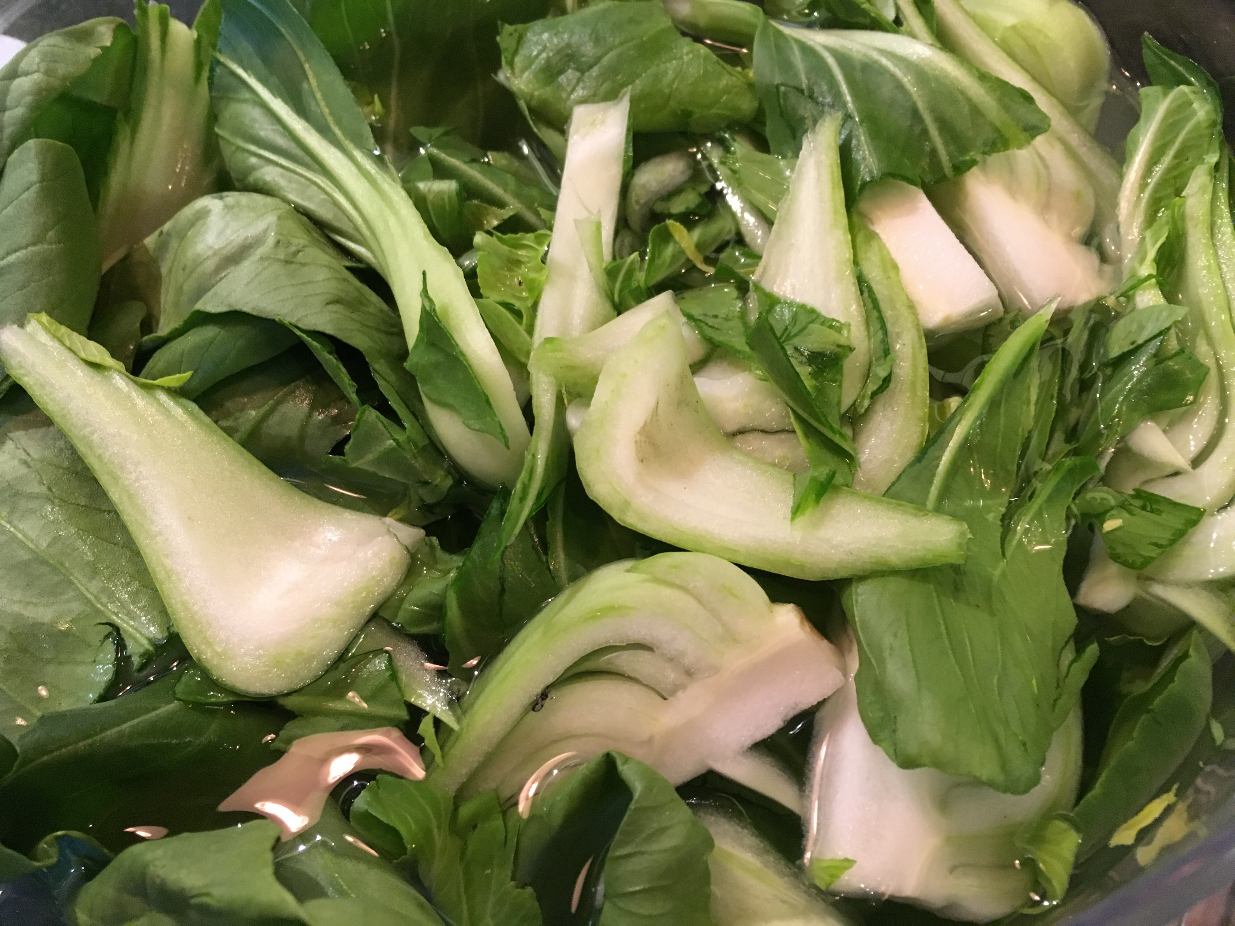 - Soak qing jaing cai or bok choy in cold water for at least five minutes. Drain. Repeat and drain.