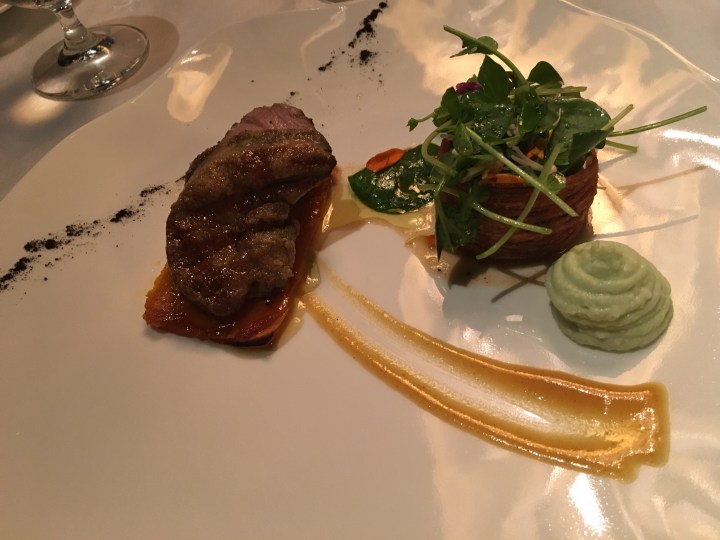 The next course featured cool seafood salads with colorful produce and grains: Ocean Trout Tataki, quinoa, and avocado with a 2016 Meinklang Grüner Veltliner and lobster, carrot wasabi, and sea asparagus with a 2015 Tawse, Quarry Road Riesling