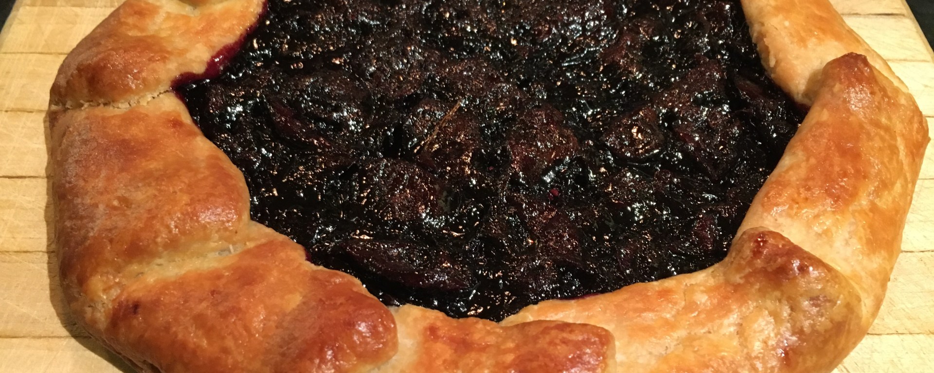 - Turn cherries out from pot onto galette pastry and spread to within one inch of the edge.