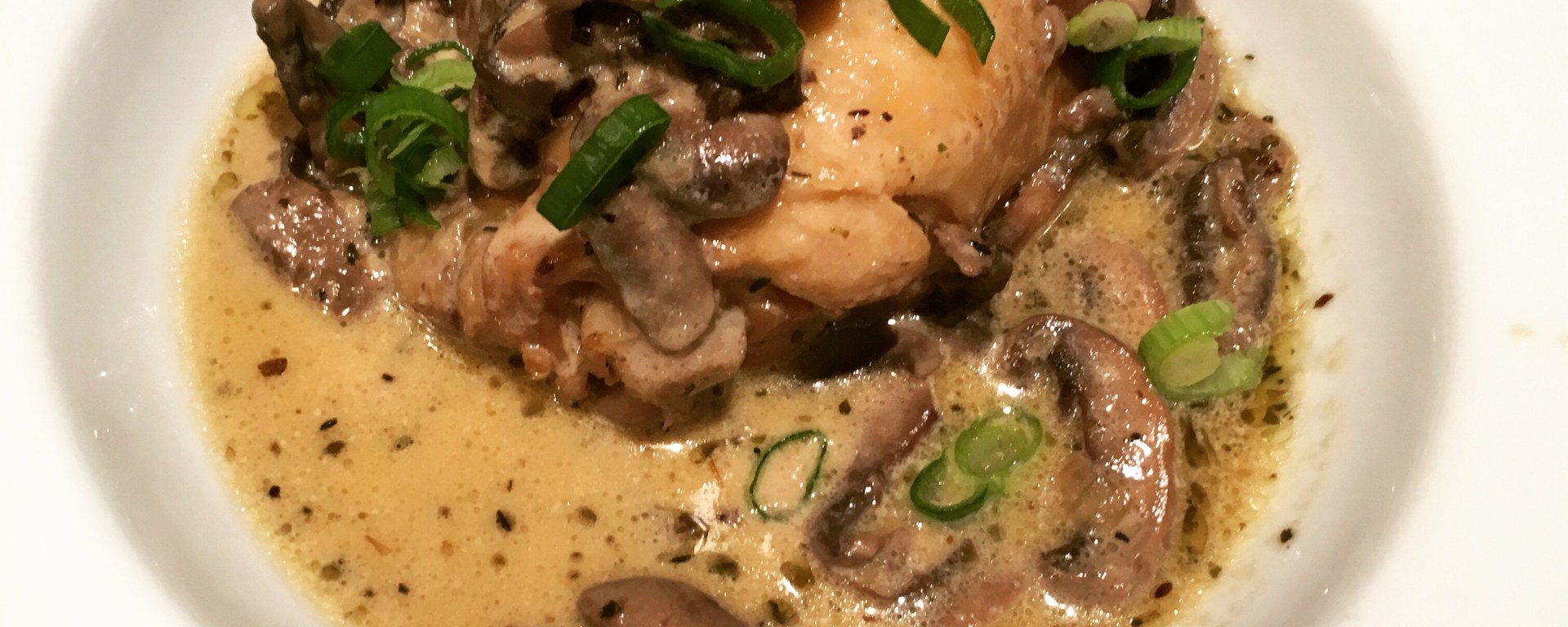 4. Place thighs in bowls, ladle mushroom sauce over the chicken and garnish with chopped scallions or parsley.