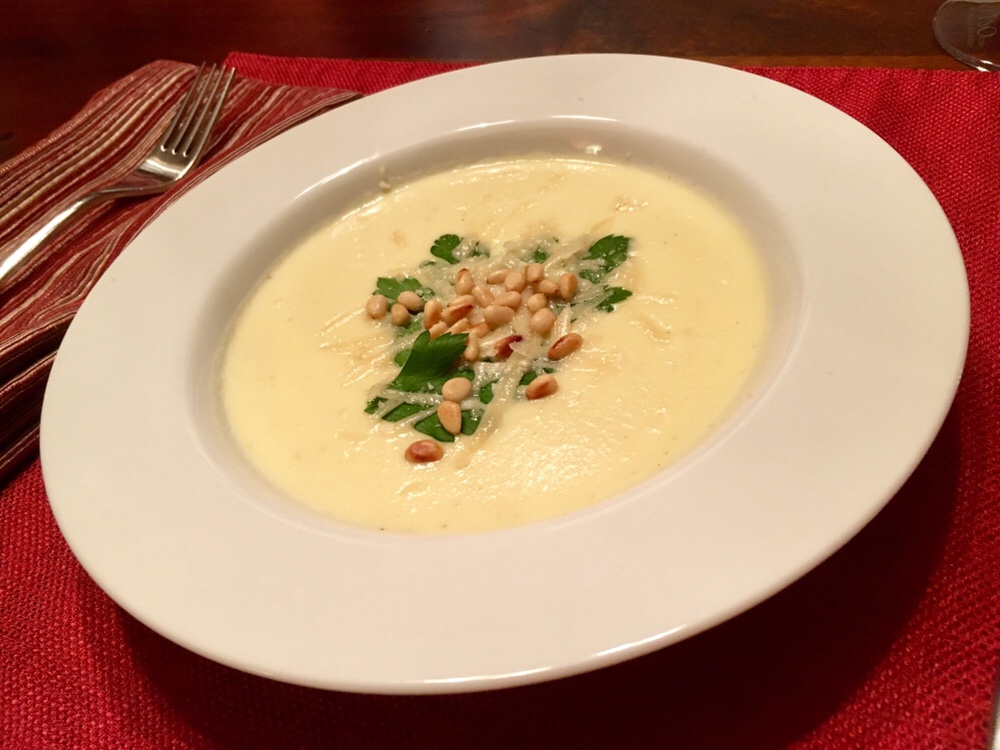 Creamy Squash Soup with Parsley, Parmesan and Pine Nuts