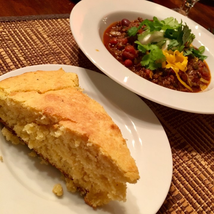 Sharp cheddar cheese, sour cream, green onion and cilantro make great toppings for chili. Make a batch of buttermilk cornbread in a cast iron skillet for a really satisfying pairing.