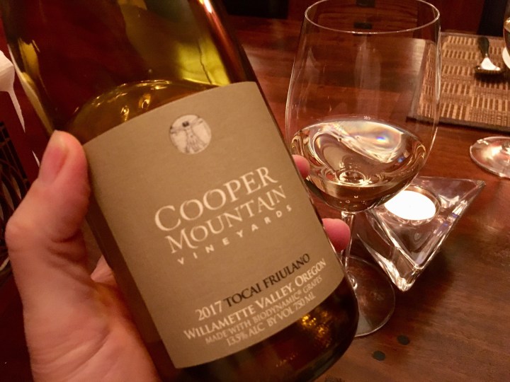 If you haven’t given up alcohol for the season of Lent, a crisp white wine pairs well with this meal. We don’t observe, so Paul selected a 2017 Tocai Friulano from Cooper Mountain Vineyards in Willamette Valley, Oregon. Bon appétit!
