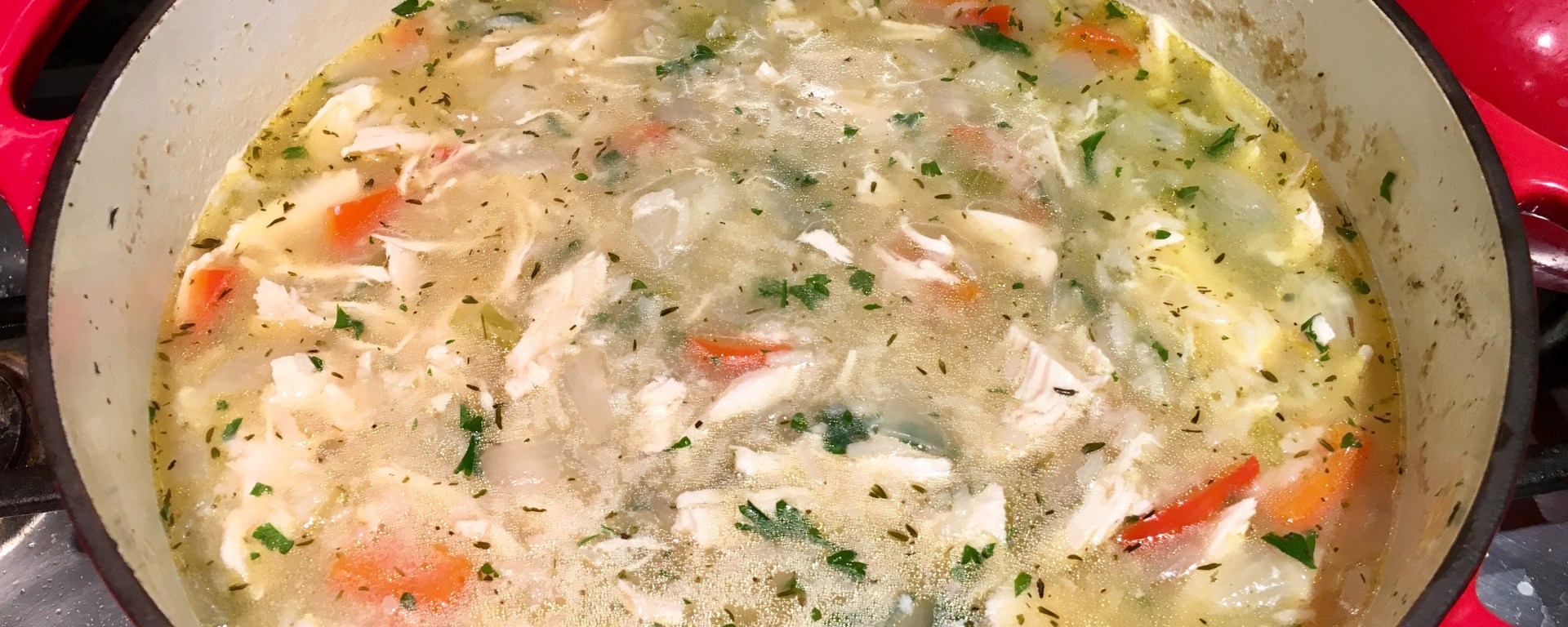 Cool nights in the Fall make hot comforting soup an appealing and easy dinner. For years, Paul and I supped on a chicken noodle soup with carrots and parsnips in routine rotation. I’ve found myself drawn to long grain rice in chicken soup with onion, garlic, celery, and red bell pepper. Sometimes, I add fresh ginger to add some warmth to this soup.